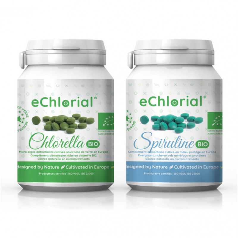 Tomar Chlorella y Spirulina con al menos dos horas de diferencia para beneficiarse de la vitamina B12 de Chlorella, tomar con un gran vaso de agua o zumo de frutas.